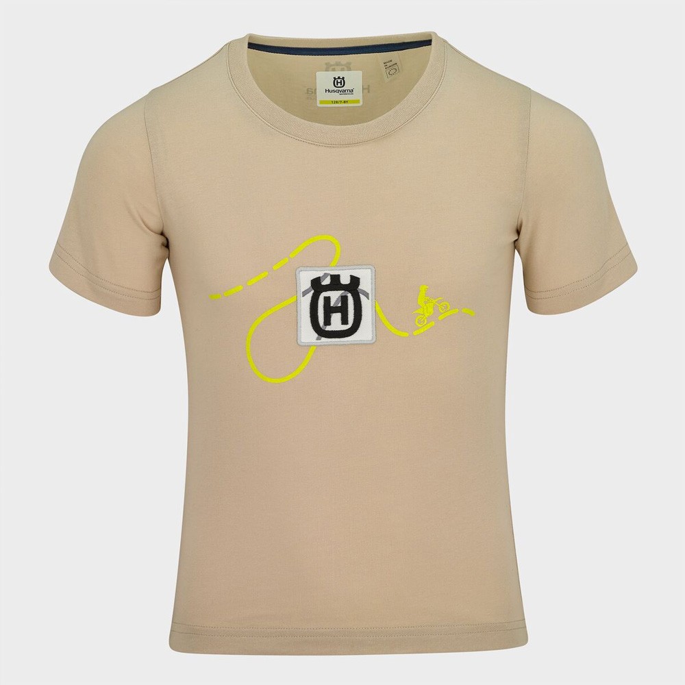 Le T-shirt enfant Husqvarna “Kids Horizon Patch Tee” beige combine style minimaliste et identité forte. Confortable et résistant, il est parfait pour les jeunes fans de la marque.